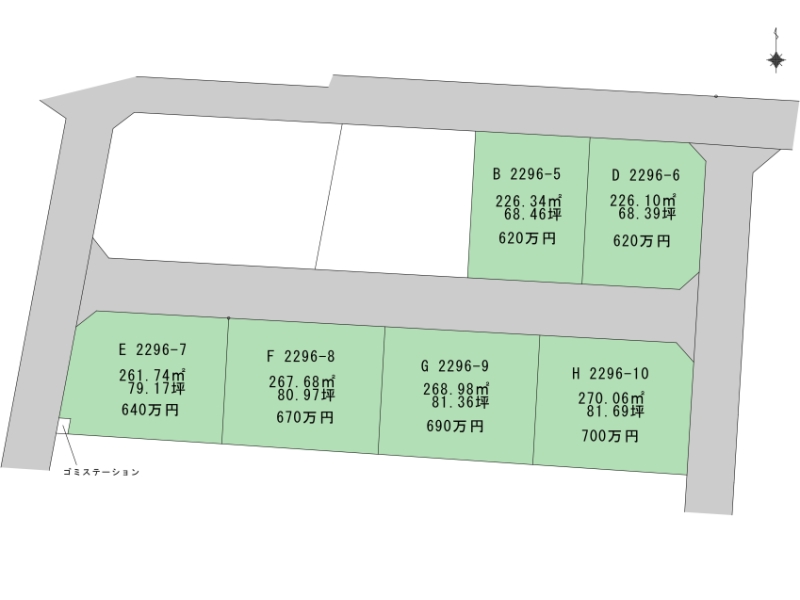 - 電気:小売電気事業者 ガス:LPG 上水道:公営(各区画引込済) 排水:合併浄化槽(敷地内浸透)